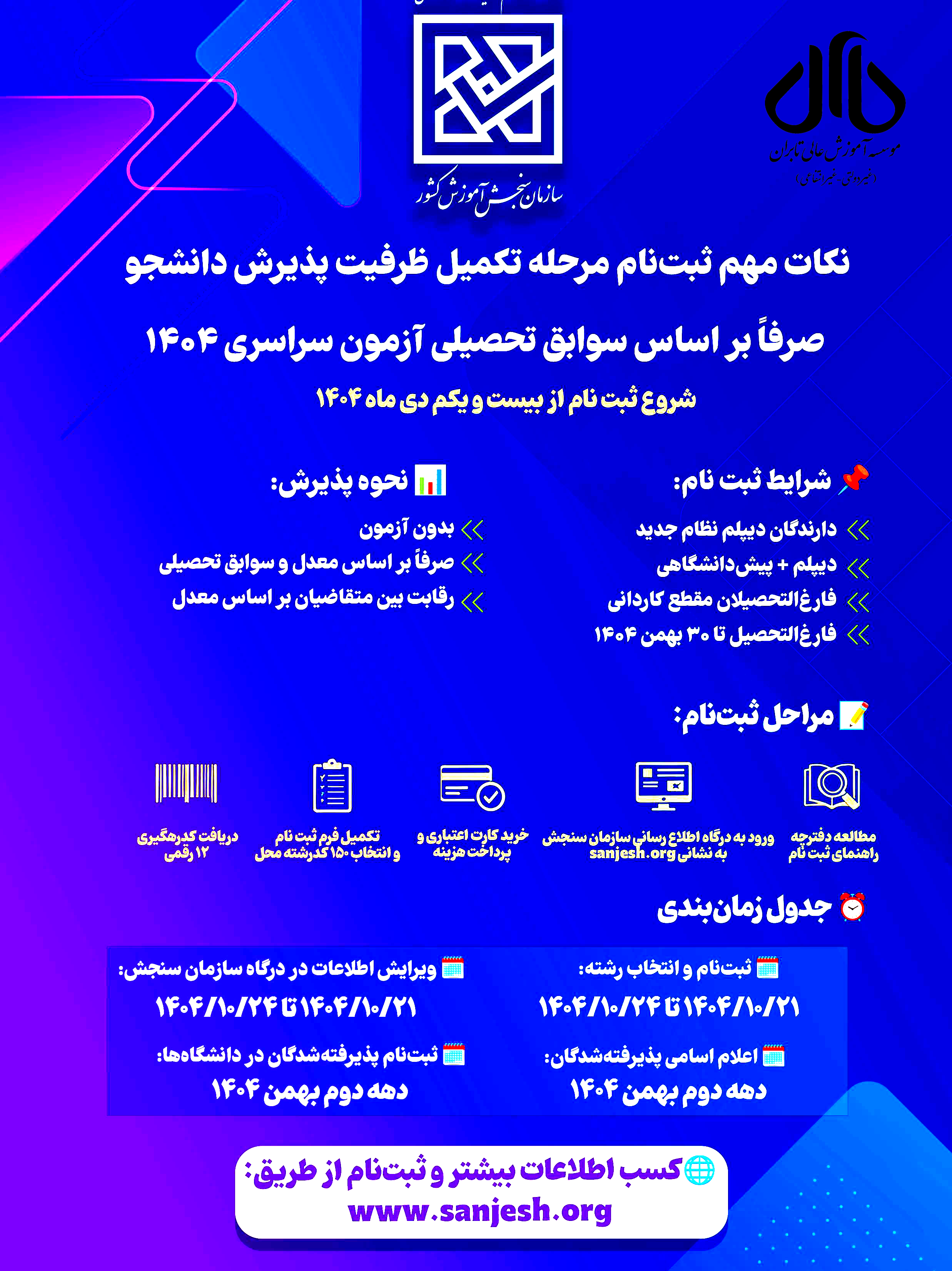 رشته های مقطع کارشناسی موسسه آموزش عالی تابران برای تکمیل ظرفیت بهمن ماه 1404